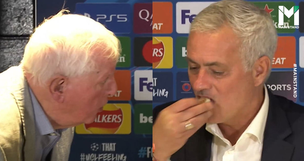 ในห้องแถลงข่าว โชเซ่ มูรินโญ่ หยิบบิสกิตขึ้นมารับประทานหนึ่งชิ้นก่อนกล่าวคำขอบคุณเป็นภาษาโปรตุกีส (Obrigado) ก่อนจะเดินไปทักทายพูดคุยกับชายสูงอายุคนหนึ่งและถ่ายภาพด้วยกัน